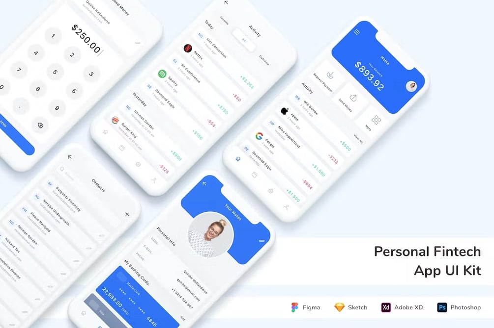 Personal Fintech App UI Kit is designed with modern design trends.